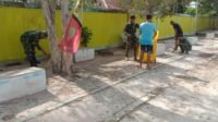 Satgas TMMD Bantu Warga Bersihkan Lingkungan Area Posyandu