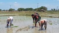 Panite – Babinsa Koramil 1621-03/Mollo Utara Serda Basuki Rahmat melaksanakan pendampingan menanam padi, di Desa Lanjut Membaca….