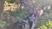 Personel Koramil 05/Batang Bersama Masyarakat Bersihkan Saluran Irigasi Pertanian
