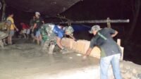 Satgas TMMD ke-123 Kodim 1424/Sinjai Laksanakan Pengecoran Lantai Jembatan di Malam Hari di Desa Lamatti Riawang
