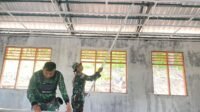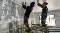 Sinergi Satgas TMMD dan Warga Desa Lanaus Percepat Pemasangan Plafon SDN Lanaus