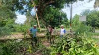 Cegah Pohon Tumbang, Babinsa Koramil-03 Kodim 1401/Majene dan Masyarakat Pangkas Ranting Pohon
