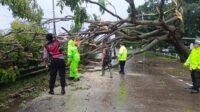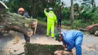 Gerak Cepat, Aparat Gabungan Tangani Pohon Trembesi Tumbang Tutup Badan Jalan Di Area By Pass Jumpai
