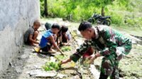 Bersihkan Lingkungan Pos, Satgaster Pos Halibete II Edukasi Anak-Anak Cintai Kebersihan