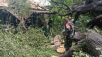 Hujan Deras Dan Angin Kencang, Babinsa Koramil 1618-03/Insut, Bergerak Cepat Bersama Masyarakat Tangani Pohon Tumbang.