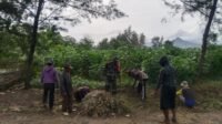 Peran Serta Babinsa Bago Bersama Warga Gotong Royong Bersihkan Jalan Menuju Pantai Bambang