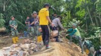 Babinsa Angkinang Ikut Gotong Royong Bantu Warga Perbaiki Jalan Yang Rusak