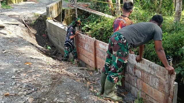 Babinsa Bantu warga Desa Binaan membangun Jambo atau Pondok di Ladang