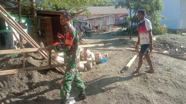 Babinsa Serda Hasibuan Melaksanakan Giat Karbak Membantu Bapak Haidir Merapikan Rumah Yang Sedang Dibangun, Yang Lanjut Membaca….