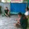 Dengan cangkul dan sekop, mereka mencampur bahan-bahan bangunan seperti pasir, semen, dan air demi memperlancar proses pengecoran. Momen ini menjadi simbol kuatnya semangat gotong royong di tengah keterbatasan alat berat.