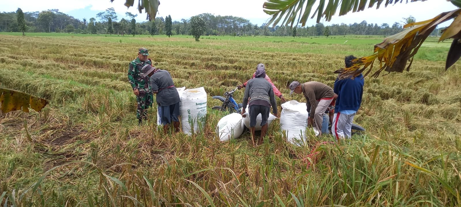 Lumajang, Dalam upaya mendukung ketahanan pangan dan meningkatkan hasil pertanian, Babinsa Sumbersuko Koramil 0821-19/Sumbersuko, Serda Warsono Efendy, melaksanakan pendampingan panen padi di lahan milik Hadi, anggota Kelompok Tani (Poktan) Suko Makmur 1. di Dusun Suko I, Desa Sumbersuko, Kecamatan Sumbersuko, Kabupaten Lumajang, Jawa Timur, pada Senin (17/2/2025).