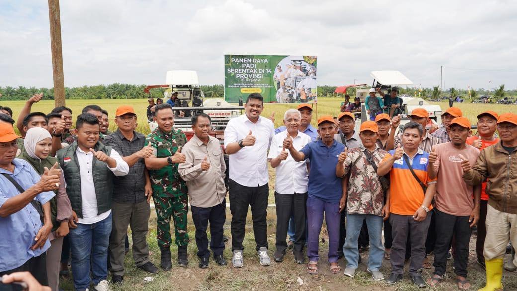 Sergai – Pangdam I/Bukit Barisan, Mayjen TNI Rio Firdianto, bersama Gubernur Sumut, M. Bobby Afif Nasution dan unsur Forkopimda, menghadiri acara Panen Raya Padi di Desa Paya Mabar, Kecamatan Tebing Tinggi, Kabupaten Serdang Bedagai, Senin (7/4/2025).