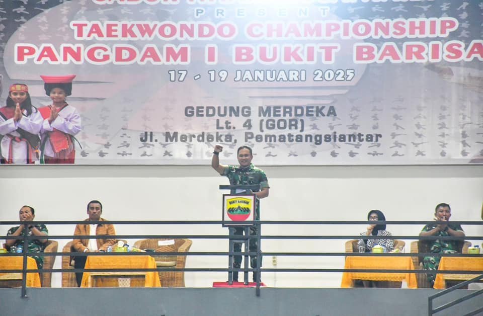 Pematangsiantar – Pangdam I/BB, Mayjen TNI Rio Firdianto, secara resmi menutup Kejuaraan Taekwondo Sabuk Hitam Nusantara Piala Pangdam I/BB yang berlangsung di GOR Merdeka Pematangsiantar pada Minggu (19/1/2025).