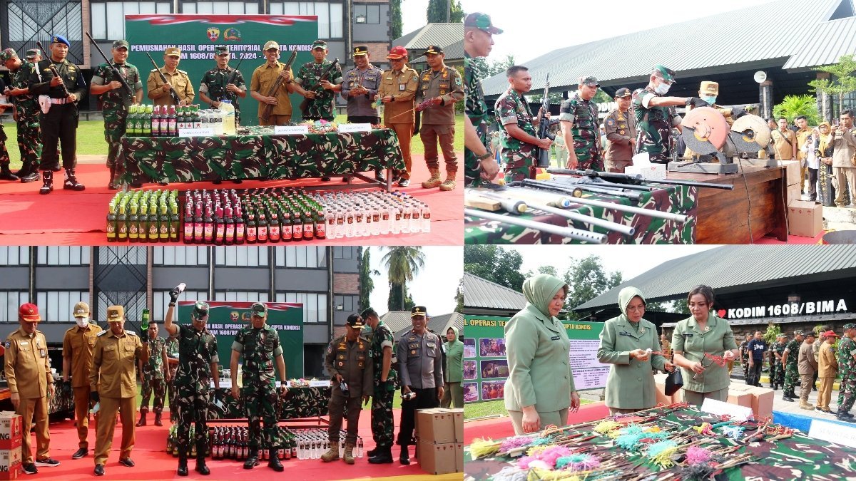 Selain itu, Danrem 162/WB Brigjen TNI Moch. Sjasul Arief beserta para Kasirem 162/WB, Dandim 1608/Bima Letkol Inf. Andi Lulianto, S.Sos., M.M., Kasdim 1608/Bima dan Perwira Jajaran Dim 1608/Bima, serta pejabat Forkopimda Kota dan Kabupaten Bima turut berpartisipasi dalam kegiatan pemusnahan barang bukti hasil Operasi Teritorial dan Patroli Cipta Kondisi Kodim 1608/Bima tahun 2024-2025.
