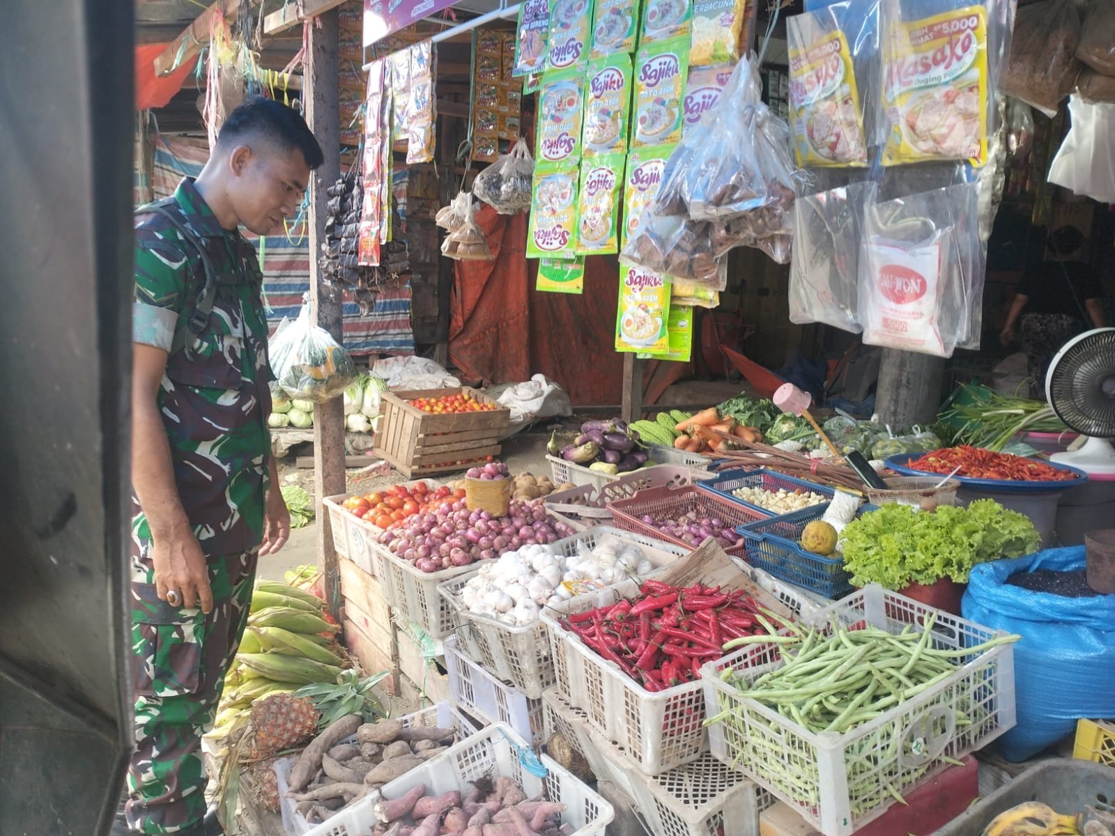 “Untuk itu, Babinsa harus sering melakukan pemantauan di pasar-pasar untuk mengetahui harga sembako yang merupakan kebutuhan sehari-hari masyarakat. Hal ini sebagai upaya dalam menjaga stabilitas harga sembako yang menjadi kebutuhan dasar bagi masyarakat,” jelas Letda Inf Murjalil.
