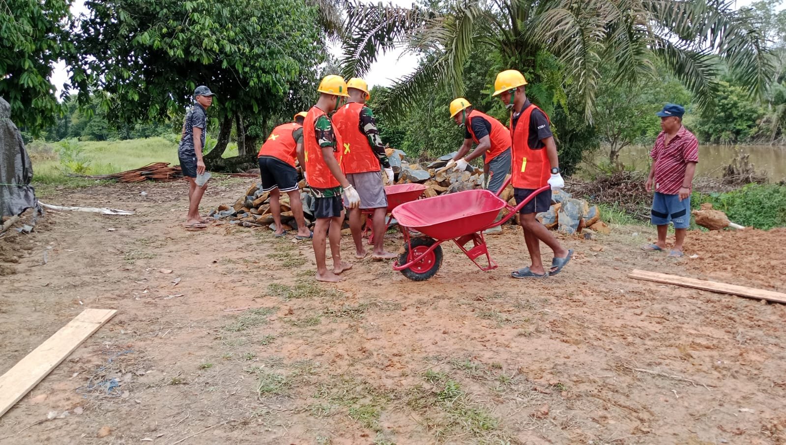 Sejak tibanya alat dan material konstruksi di lokasi, aktivitas pembangunan semakin intensif. Personel dari Kodim 1015/Sampit dan Yonif TP 923/Mentaya bersama unsur lainnya bahu-membahu mengangkut material, menyusun satu demi satu, serta melakukan berbagai pekerjaan teknis di lapangan. Semangat gotong royong terlihat jelas dalam setiap tahapan pengerjaan yang dilakukan.