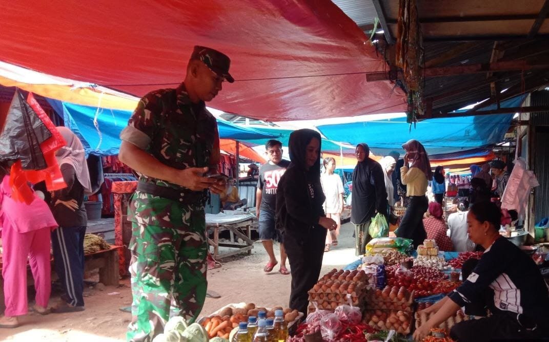 Kegiatan monitoring ini dilakukan sebagai langkah antisipasi terhadap fluktuasi harga bahan pangan di pasar tradisional, terutama dalam memenuhi kebutuhan harian warga setempat. Sertu Isman turun langsung berinteraksi dengan para pedagang untuk mengecek harga komoditas utama seperti beras, minyak goreng, telur, serta bumbu dapur.