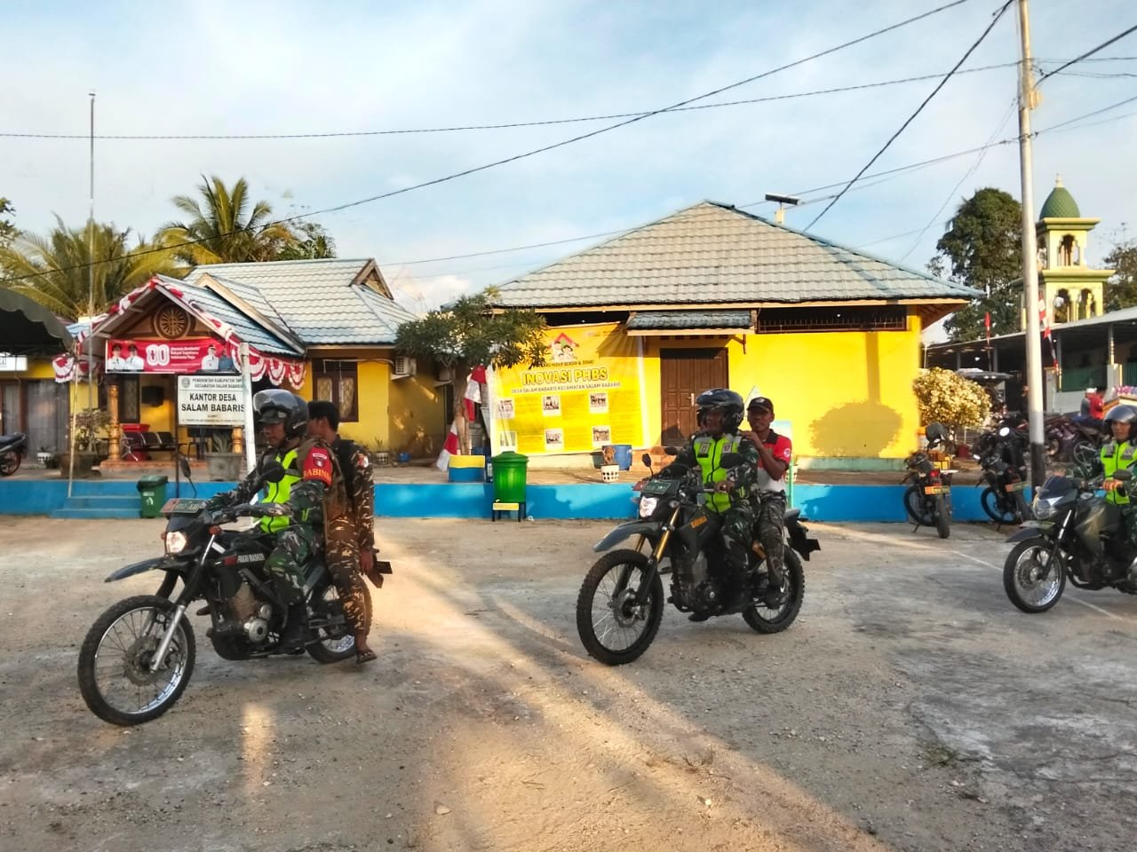 TAPIN – Babinsa Koramil 1010-03/Tapin Selatan Kodim 1010/Tapin Sertu Hadi Sutrisno memimpin kegiatan patroli keamanan sekaligus posko mitigasi bersama Komponen Pendukung (Komduk) di Desa Salam Babarís, Kecamatan Salam Babarís, Jumat (26/09).