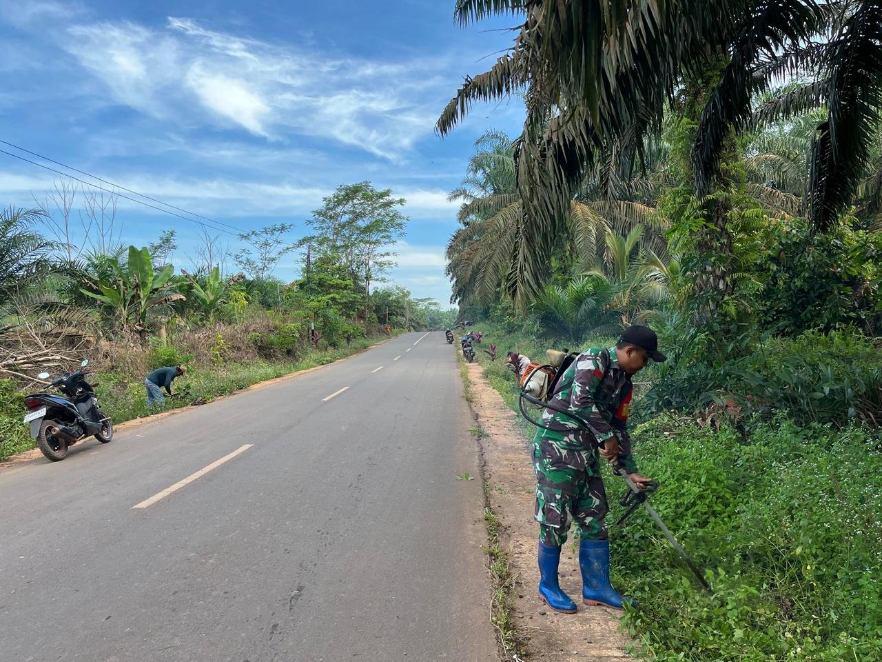 Pada kesempatan tersebut Babinsa Praka Adi Teguh melaksanakan gotong royong bersama masyarakat membersihkan parit, sampah dan rumput liar di pinggir badan jalan di wilayah binaan tersebut, kondisi tersebut mendorong Babinsa mengajak masyarakat untuk bergotong royong guna melaksanakan pembersihan rumput dan sampah plastik sehingga nantinya membuat kondisi jalan menjadi kelihatan bersih dan terpelihara.