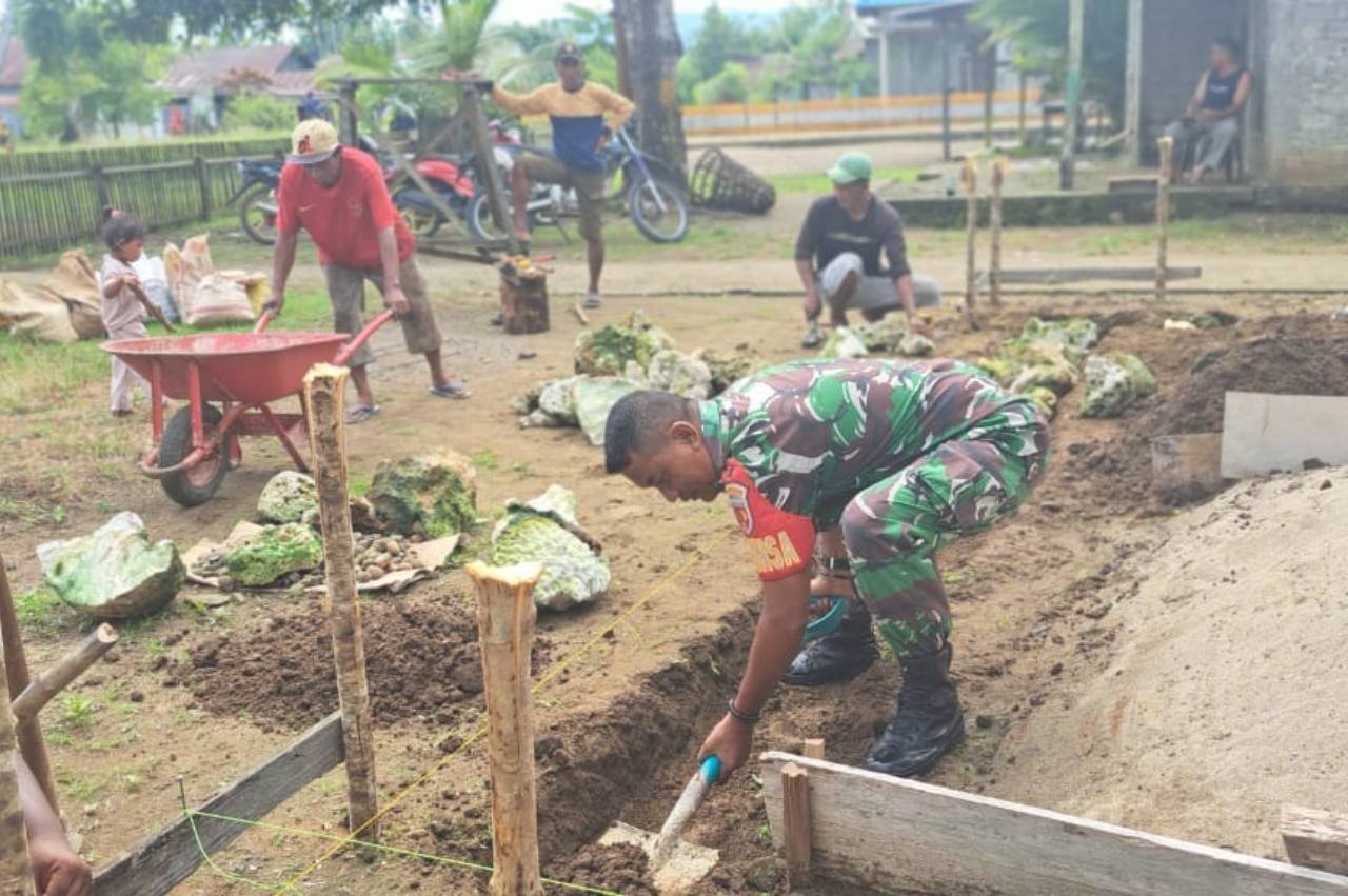 Tidore Kepulauan – Babinsa Kodim 1505/Tidore, Sertu Rahmat Pariusamahu, kembali menunjukkan kepeduliannya terhadap warga di wilayah binaannya. Sertu Rahmat turut membantu menggali pondasi rumah milik Bapak Naser, warga Desa Lifofa, Kecamatan Oba Selatan, Kota Tidore Kepulauan, Minggu (26/1/2025).