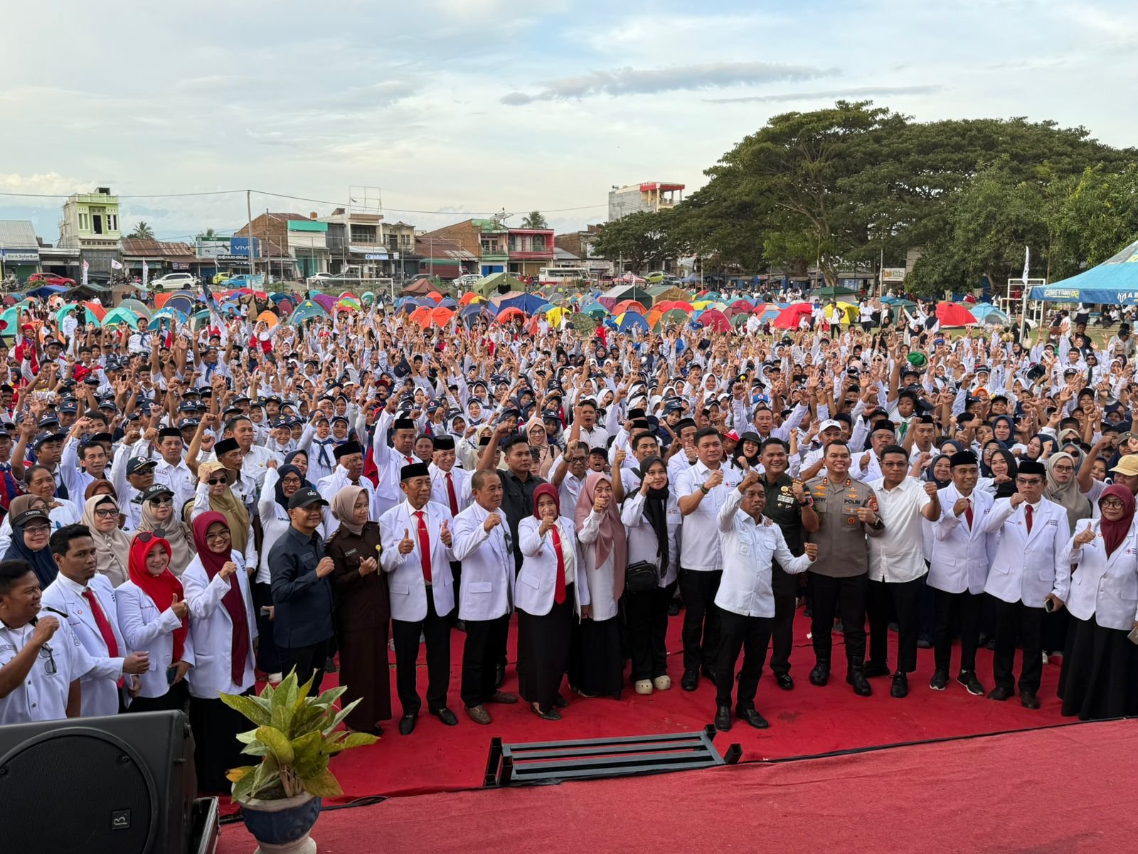 SIDRAP, 14 JANUARI 2026 – Pelantikan Pengurus Palang Merah Indonesia (PMI) Kabupaten Sidenreng Rappang (Sidrap) Periode 2025–2030 berhasil diselenggarakan pada hari Rabu (14/1) di lapangan Andi Takko Tanrutedong, Kecamatan Dua Pitue. Kegiatan yang penuh hikmat tersebut dihadiri oleh berbagai tokoh penting, antara lain Dandim 1420/Sidrap Letkol Inf Andi Zulhakim Asdar, S.H.I., M.H.I, Bupati Sidrap H. Syahrudin Alrif, S.IP., M.M, Kapolres Sidrap AKBP Dr. Fantry Taherong, S.H., S.I.K., M.H, serta Ketua PMI Provinsi Sulawesi Selatan Dr. Adnan Purichta Ichsan, SH., MH.