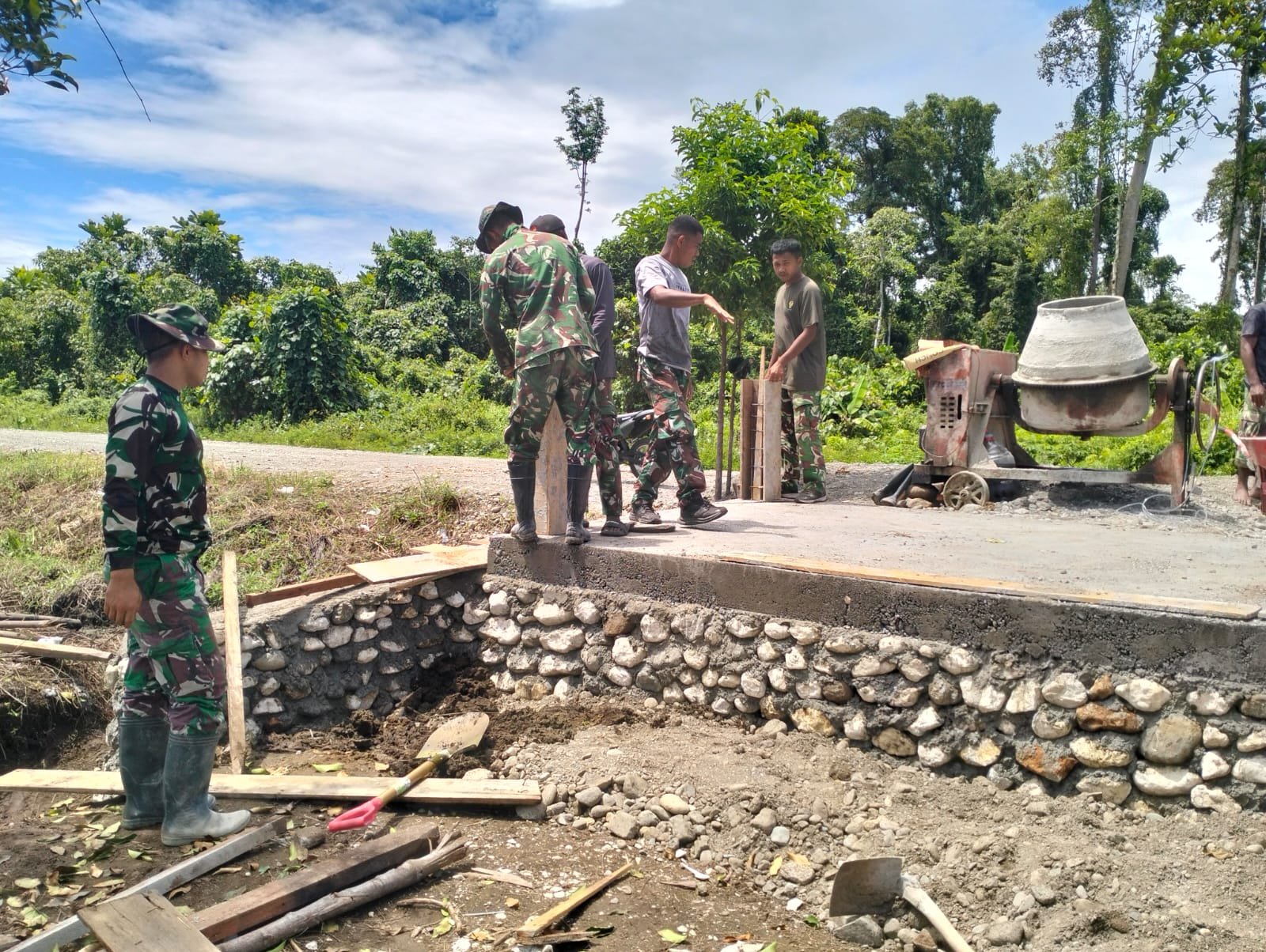 Dengan semangat gotong royong dan dedikasi tinggi, para prajurit bersama masyarakat setempat bahu-membahu menyelesaikan pekerjaan demi mempercepat akses transportasi yang lebih layak bagi warga.