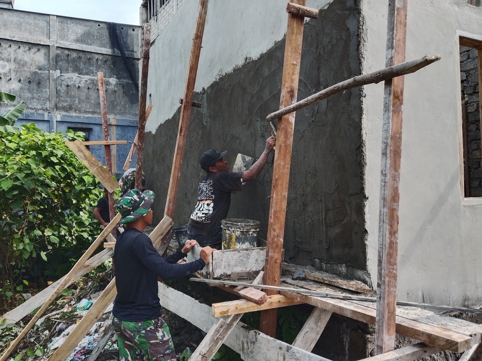 Morowali – Satu per satu bagian rumah yang dibangun dalam program Rumah Tidak Layak Huni (RTLH), yang menjadi sasaran kegiatan fisik TMMD ke-123 Kodim 1311/Morowali, mulai terselesaikan. Pada Senin (10/03/2025), pembangunan berlanjut ke tahap pemlesteran dinding guna memperkokoh struktur dan memperindah tampilan rumah.