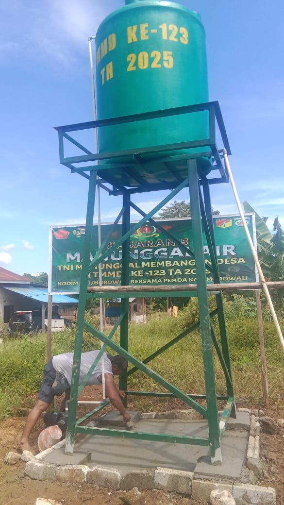 Morowali – Pekerjaan pembangunan sumur bor di Desa Bahomahoni, Kecamatan Bungku Tengah, Kabupaten Morowali, yang menjadi salah satu sasaran fisik TMMD ke-123 Kodim 1311/Morowali, kini telah memasuki tahap pengecoran dudukan tower air.