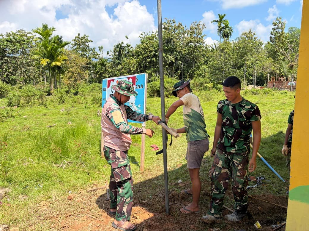 Bersama dengan masyarakat, personel Satgas TMMD terlihat berkolaborasi di lokasi pengeboran. Dalam kebersamaan ini, mereka menunjukkan semangat gotong royong untuk menghadirkan pasokan air bersih yang memberikan manfaat bagi warga desa.