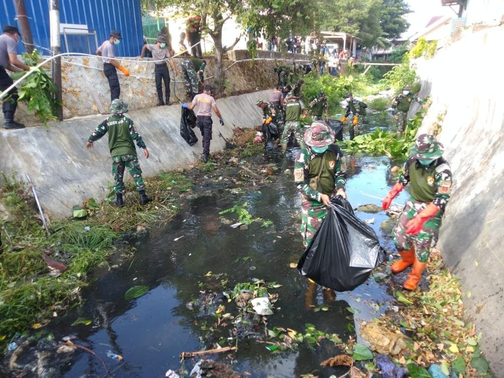 Kegiatan gotong royong ini melibatkan aparat TNI-Polri serta warga setempat yang bahu-membahu membersihkan saluran air, tumpukan sampah, hingga lumpur di dalam selokan untuk mengantisipasi penyumbatan yang bisa menyebabkan banjir.