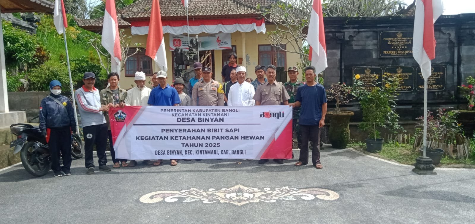 Dalam kegiatan tersebut dilaksanakan penyerahan 16 ekor bibit sapi kepada warga Desa Binyan. Bibit sapi ini merupakan realisasi program ketahanan pangan yang dianggarkan 20% dari Dana Desa (DD) Desa Binyan Tahun 2025.