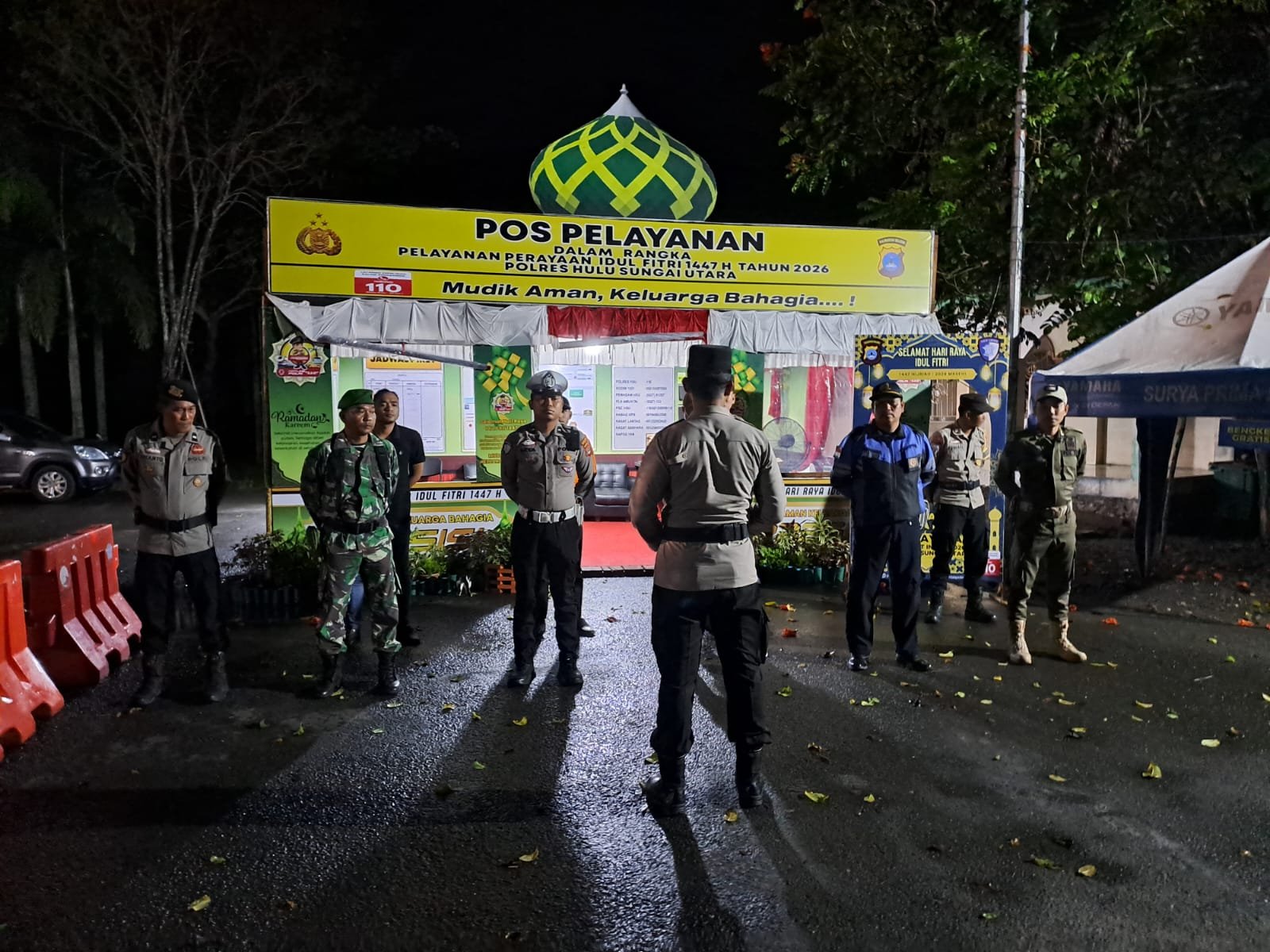 HULU SUNGAI UTARA – Pengamanan gabungan dalam rangka Operasi Intan TA 2026 pada perayaan Hari Raya Idul Fitri 1447 H di Posko Rest Area Muara Tapus, Senin (16/03/2026) malam, berlangsung aman dan terkendali.