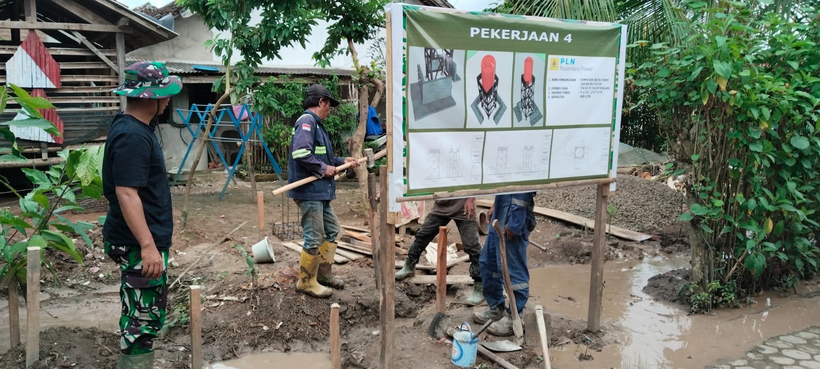 Saat ini, tim sedang melakukan pemasangan boplang dan pembuatan pondasi water station untuk menampung air yang dihasilkan. Hal ini merupakan langkah penting dalam memastikan bahwa air yang dihasilkan dapat didistribusikan dengan aman dan bersih kepada masyarakat.