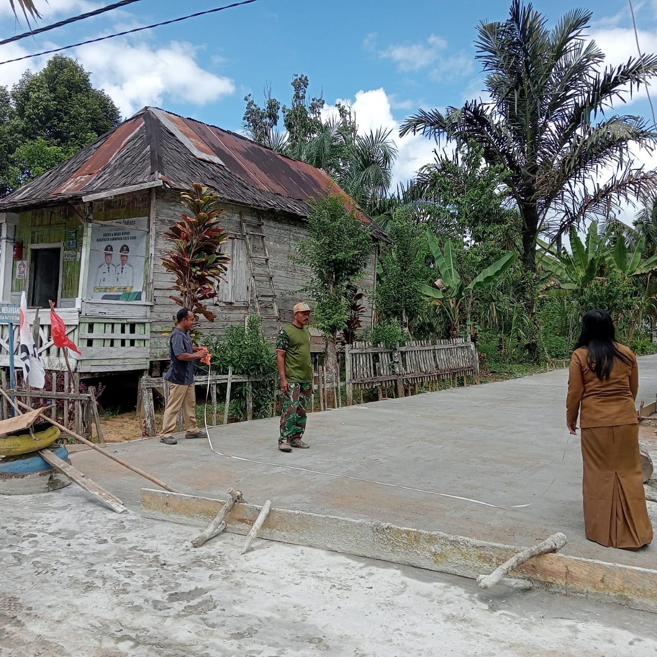 Satgas TMMD yang terdiri dari personel TNI, bersama warga setempat, bekerja secara bergotong royong selama beberapa hari untuk menuntaskan pengecoran jalan yang sebelumnya rusak dan sulit dilalui.
