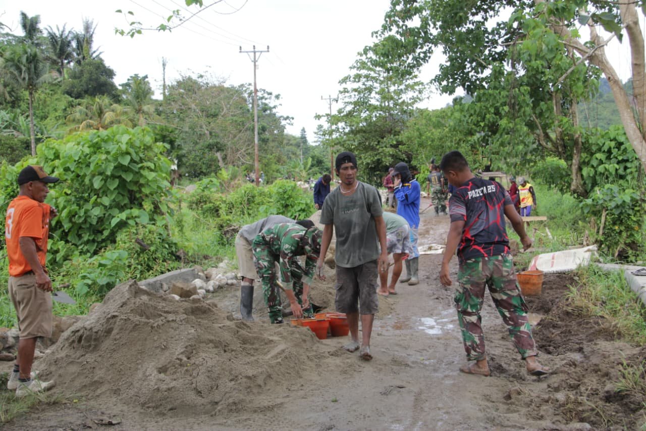 Kegiatan tersebut dikerjakan oleh personel Tentara Nasional Indonesia yang tergabung dalam Satgas TMMD bersama masyarakat setempat. Pengerasan jalan dilakukan untuk meningkatkan kualitas akses transportasi warga, sementara pembangunan talud difokuskan sebagai penahan tanah guna menjaga ketahanan badan jalan.