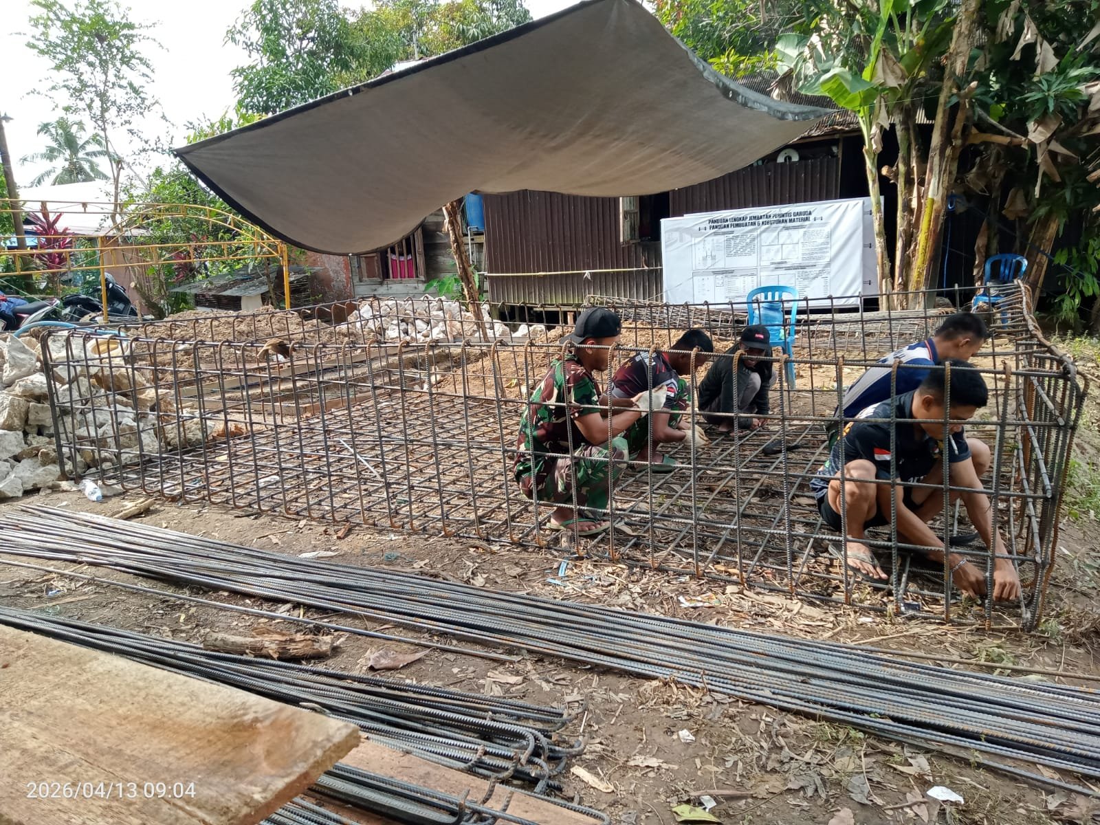“Tahap pengerjaan besi pondasi tiang ini sangat menentukan kualitas jembatan. Karena itu kami pastikan prosesnya berjalan optimal agar pondasi berdiri kuat dan aman saat digunakan warga,” tegas Dandim.