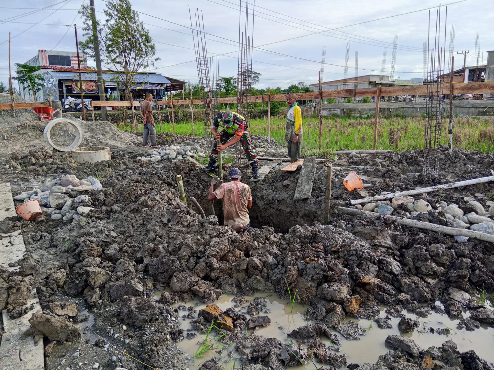 Penuh Semangat, TNI Bantu Warga Bangun Pondasi Rumah