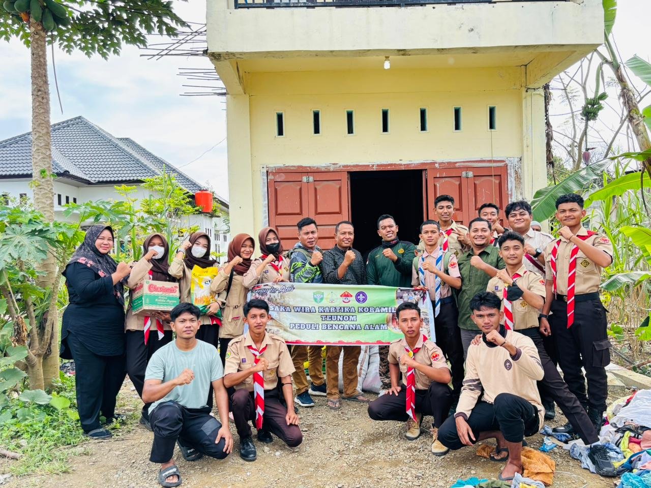 ACEH JAYA – Pramuka Saka Wira Kartika binaan Koramil 06/Teunom Kodim 0114/Aceh Jaya menyalurkan bantuan kemanusiaan kepada korban bencana banjir di Desa Menasah Lhok, Kecamatan Merdu, Kabupaten Pidie Jaya, Jumat (02/01/2026).