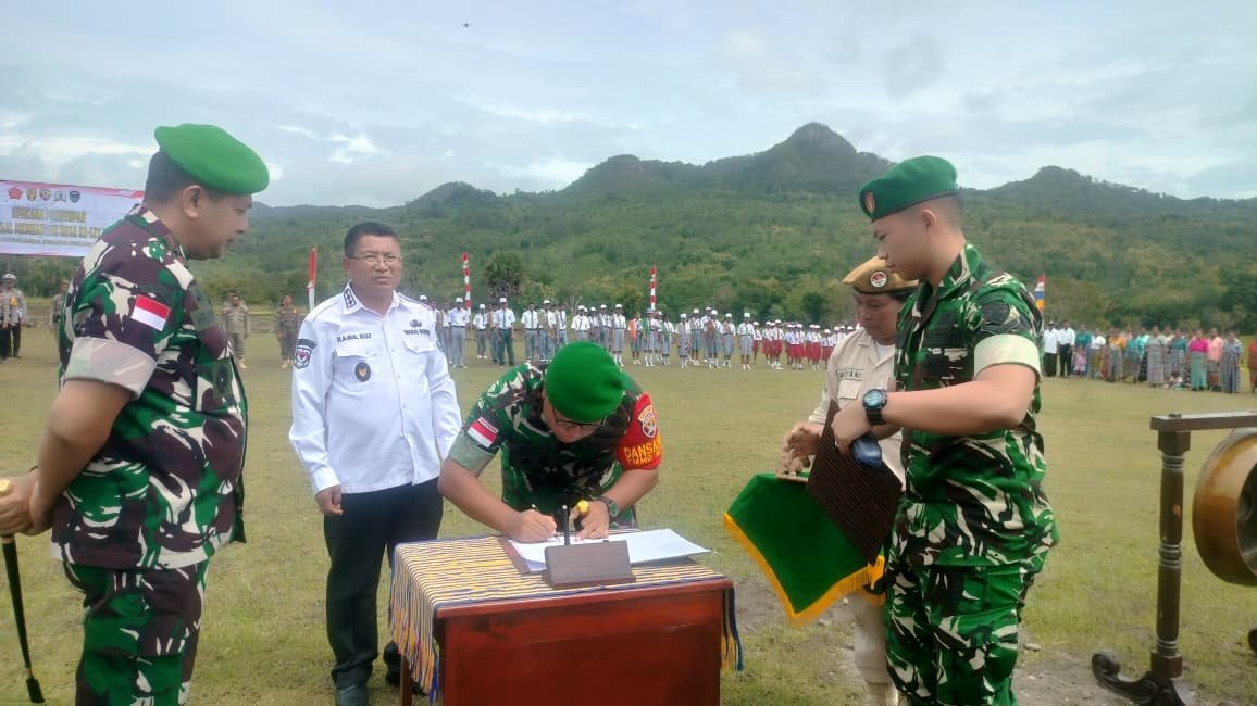 NTT–Kefamenanu. Rangkaian kegiatan Penutupan TMMD Ke-127 Kodim 1618/TTU di wilayah perbatasan berlangsung penuh khidmat dan sarat makna di Desa Sunkaen, Kecamatan Bikomi Nilulat, Kabupaten Timor Tengah Utara (TTU), Rabu (11/03/2026), Dalam kesempatan tersebut, Dandim 1618/TTU Letkol Arm Didit Prasetyo Purwanto, S.E. selaku Dansatgas TMMD melaksanakan penandatanganan naskah program TMMD Ke-127 yang menjadi simbol berakhirnya seluruh rangkaian kegiatan program pembangunan terpadu antara TNI dan pemerintah daerah.