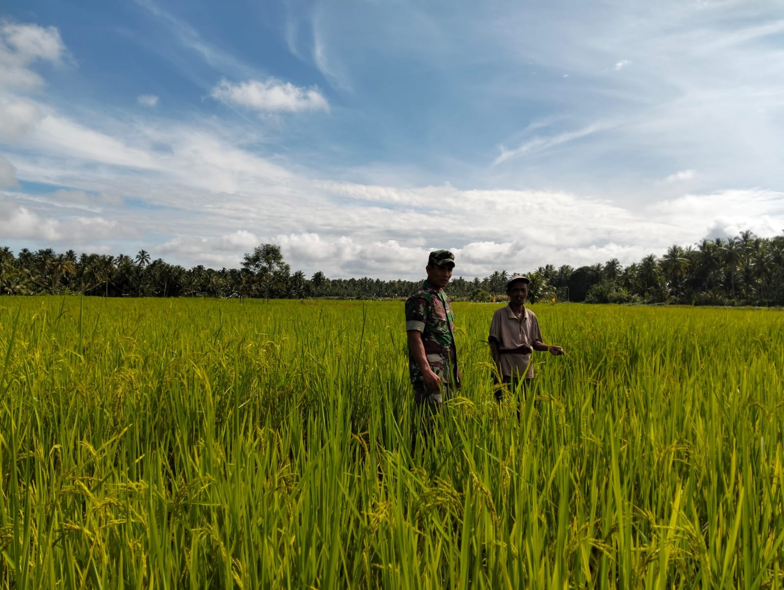 Peran Aktif Babinsa Dampingi Petani Pantau Perkembangan Tanaman Padi Di Desa Binaan