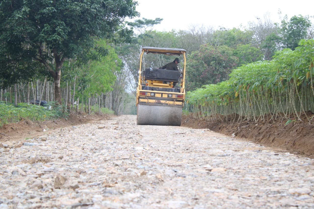 Tahap perataan ini dilakukan untuk memastikan permukaan jalan menjadi rata, padat, dan siap menerima lapisan berikutnya. Vibro Roller dipilih karena kemampuannya memadatkan material dengan tekanan tinggi sekaligus meratakan permukaan, sehingga struktur jalan menjadi lebih kuat dan tahan lama.
