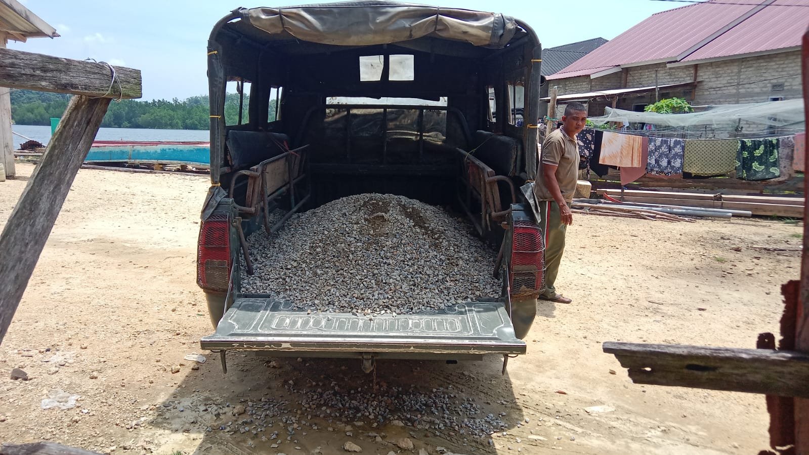 Salah satu langkah yang dilakukan adalah dengan mengoptimalkan kendaraan dinas untuk mendistribusikan material bangunan ke berbagai titik sasaran pembangunan.