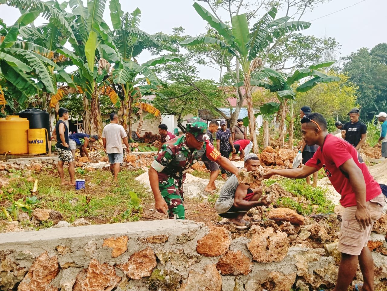 Pererat Silaturahmi, Babinsa Desa Kacepi Ramil 1512-03/Gebe Bantu Warga Buat Pondasi Rumah
