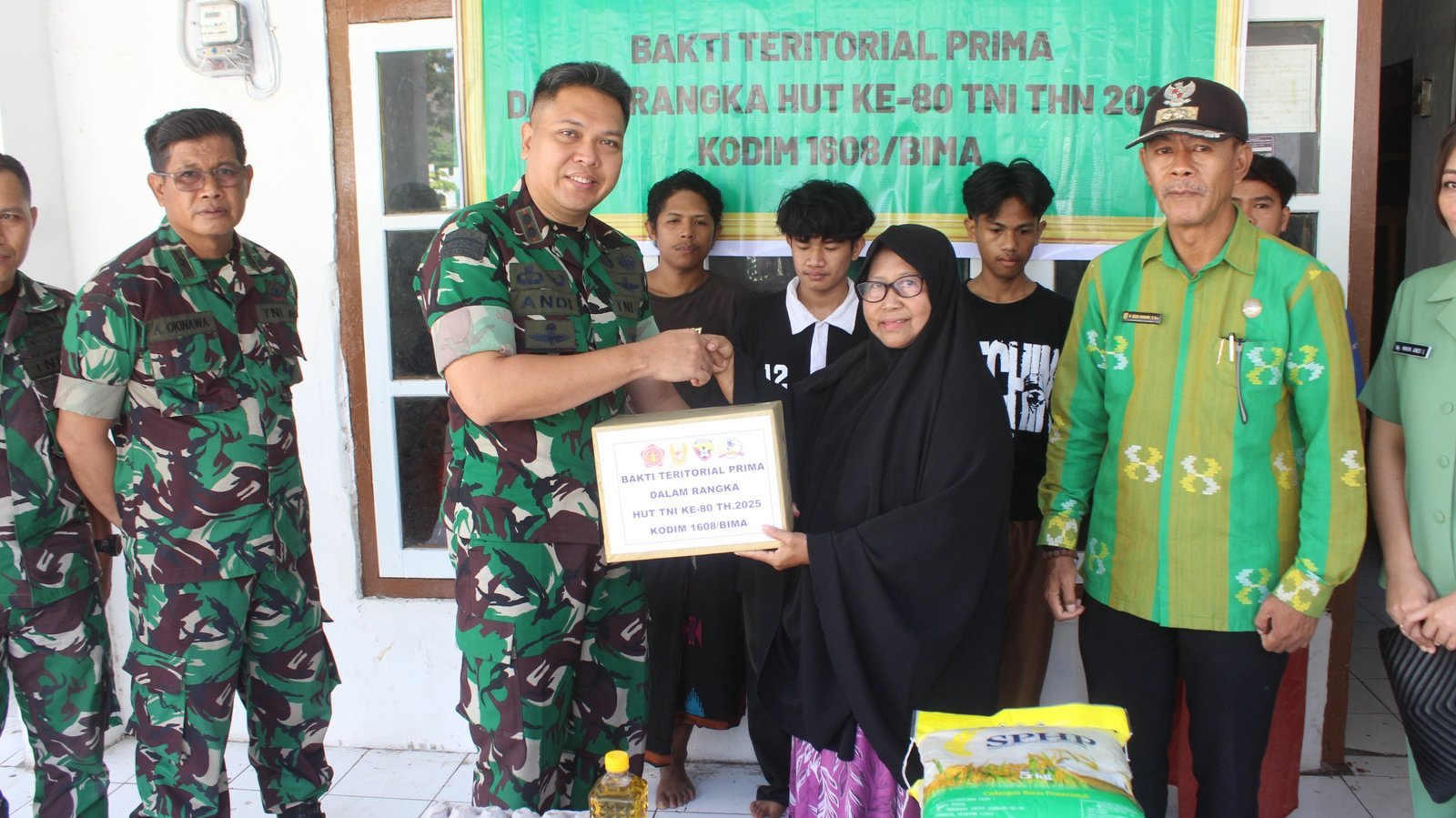 Kota Bima _ Kamis, 18 September 2025 – Dalam rangka bakti teritorial prima memperingati HUT TNI ke-80, Dandim 1608/Bima Letkol Inf. Andi Lulianto, S. S. Kom., M. M., bersama rombongan menggelar kegiatan pemberian sembako kepada veteran, warakawuri, dan anak yatim piatu di Kota Bima. Kegiatan ini menjadi wujud kepedulian TNI terhadap para pahlawan serta masyarakat yang membutuhkan.