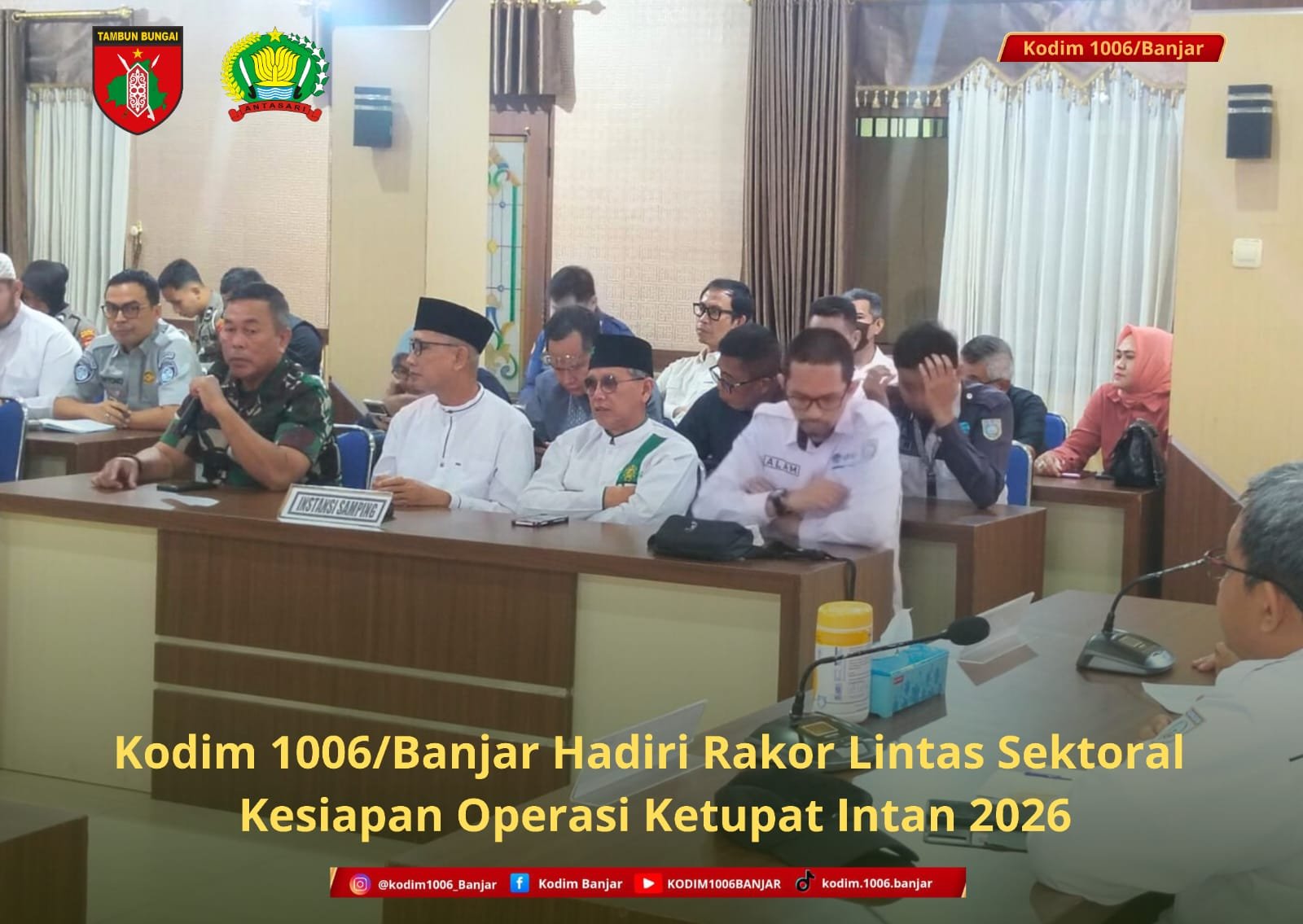 Martapura – Kodim 1006/Banjar menghadiri Rapat Koordinasi (Rakor) Lintas Sektoral dalam rangka kesiapan pelaksanaan Operasi Kepolisian Terpusat Ketupat Intan 2026 yang digelar di Aula Sarja Arya Racana Polres Banjar, Kelurahan Jawa, Kecamatan Martapura, Kabupaten Banjar, Rabu (11/3/2026).