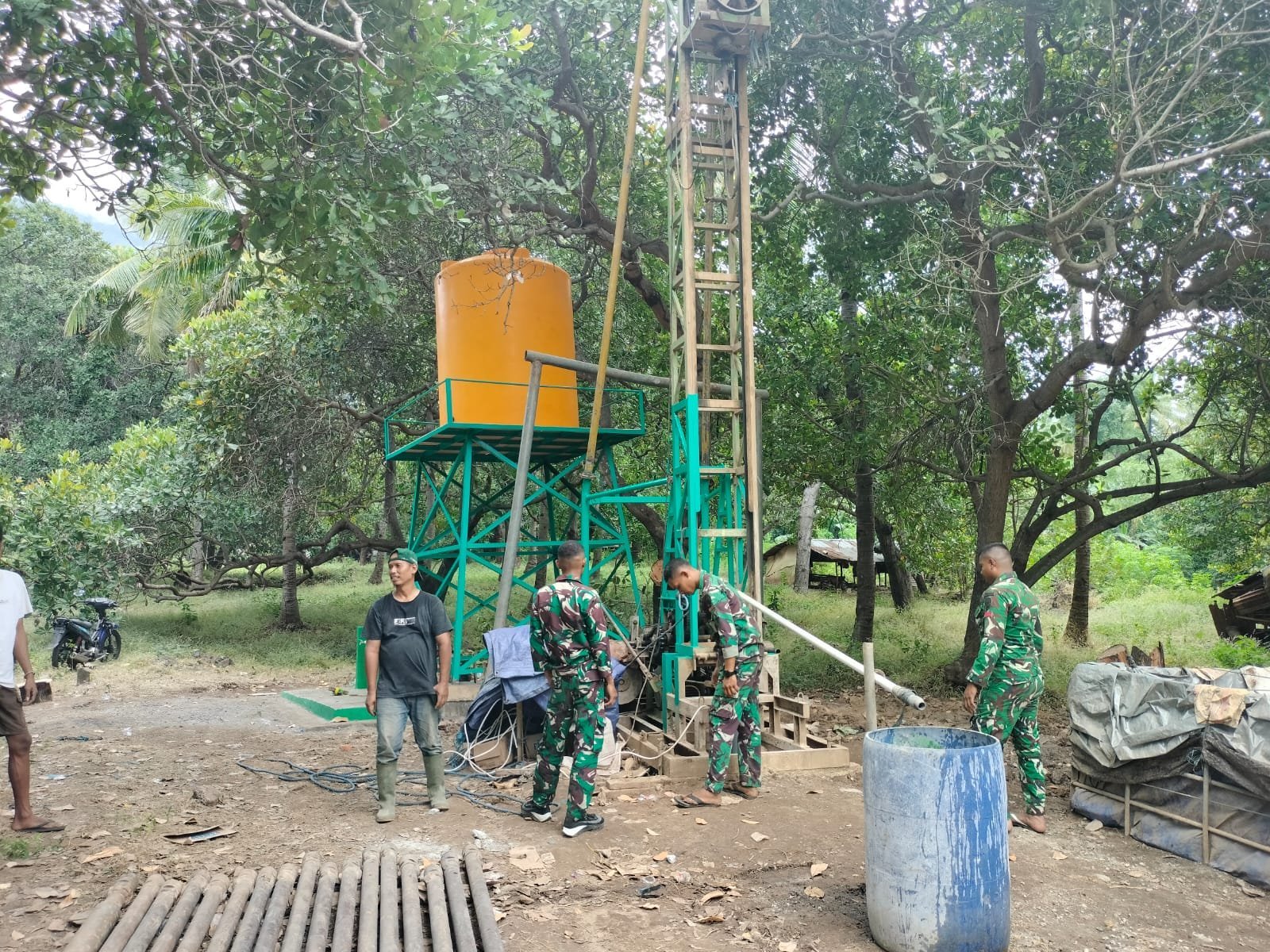 Flotim – Dalam rangka membantu dan mempermudah masyarakat mendapatkan air bersih, personil Satgas TMMD ke 124 Kodim 1624/Flotim bersama warga berupaya menyelesasikan pembuatan sumur bor di bertempat di desa Puken tobi wangi bao Kecamatan Larantuka, Kabupaten Flotim. Kamis (22/05/2025).