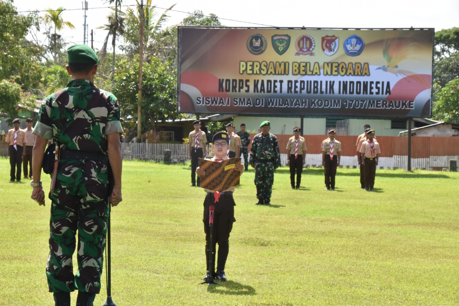 MERAUKE – Kodim 1707/Merauke menggelar kegiatan Persami Bela Negara Korps Kadet Republik Indonesia (KKRI) bagi siswa-siswi SMA di wilayah Kabupaten Merauke, Papua Selatan, pada Triwulan I Tahun 2026. Kegiatan tersebut dilaksanakan di Makodim 1707/Merauke, Jalan Raya Mandala, sebagai bagian dari upaya pembinaan generasi muda dalam menanamkan nilai-nilai kebangsaan dan cinta tanah air sejak dini.