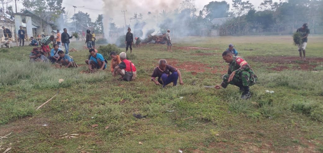 Dalam kegiatan ini, Babinsa Serka Simon A. Sunbanu bersama-sama dengan masyarakat Desa Naukae melaksanakan pembersihan lapangan guna persiapan upacara. Kegiatan ini menunjukkan kerja sama yang baik antara Babinsa dan masyarakat dalam mempersiapkan HUT RI ke-80 tahun.