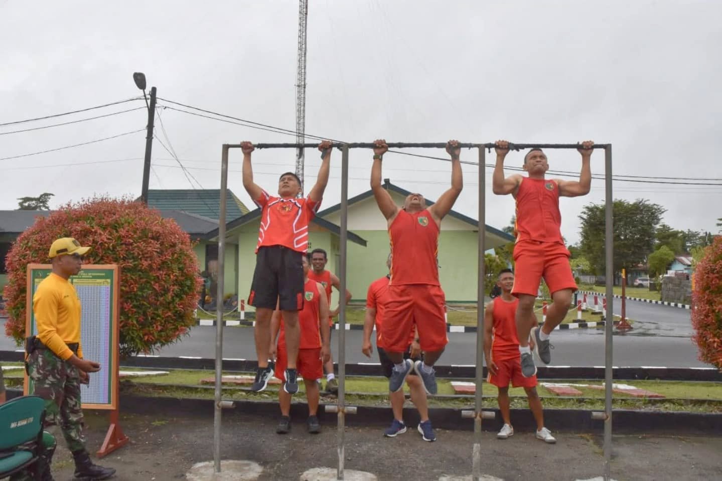 Personel Kodim 1710/Mimika melaksanakan tes kesamaptaan jasmani, bagi yang akan mendapatkan Usul Kenaikan Pangkat (UKP) pada periode 1 Oktober 2025, bertempat di Lapangan Makodim 1710/Mimika, Jalan Agimuga Mile 32, Distrik Kuala Kencana, Kab. Mimika. Jumat, (11/4/2025).