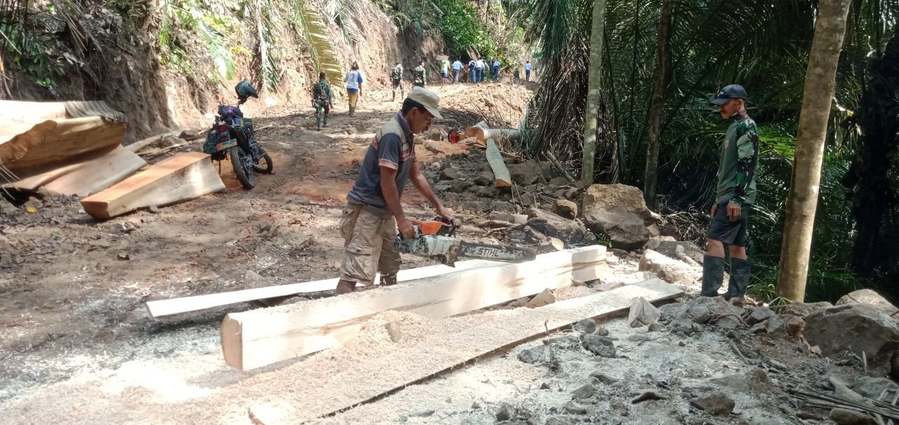 Sejak pagi, anggota Satgas TMMD bersama warga bergotong royong mengolah kayu menjadi papan dengan ukuran yang sesuai untuk digunakan sebagai cetakan pengecoran. Mal ini berfungsi sebagai penahan agar struktur jembatan dapat terbentuk dengan rapi dan kuat saat proses pengecoran berlangsung.